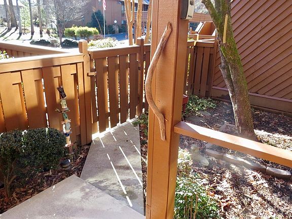 Location is ideal at Woodsong. In town, close to Brevard College, downtown shops and restaurants, biking/walking trails and the entrance to the Pisgah National Forest. Especially nice end unit within the Woodsong enclave with easy access in to this main level unit. Condo offers 2 bedrooms, 2 full baths, 2 porches, fireplace, wood flooring, all appliances, front yard courtyard, laundry closet with washer and dryer. Also this unit offers additional storage space or workshop in basement with outside entry.