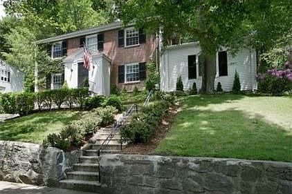 BROOKLINE. Charming, sun filled, brick Colonial with gracious flow. Kitchen with separate breakfast nook overlooking patio and landscaped yard.Generous family room (23'x17'). Elegant living room with fireplace. Period detail, C/A, hardwood floors. Private setting.