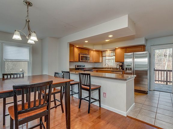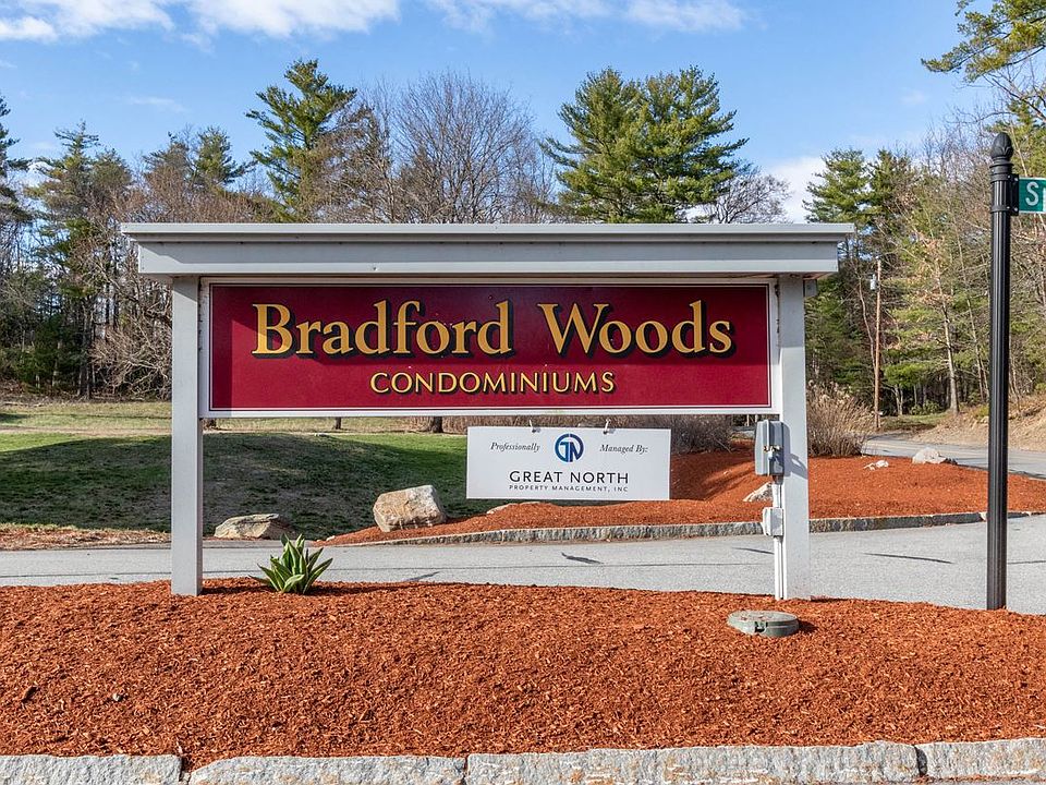 BRADFORD WOODS townhome style condominium. 4 level END UNIT with THREE BEDRROOMS, 2.5 BATHS and GARAGE. Open Living/ Dining area with wood burning FIREPLACE. Kitchen features stainless steel appliances, BREAKFAST BAR, extra cabinet storage and sliders to 10 x 12 DECK. Second level features Master bedroom with full bath, secondary bedroom, Full Guest Bath and laundry. Private 3rd floor bedroom with vaulted ceiling and skylights. Bonus Room on lower level. Association includes 2 pools and clubhouses, basketball and tennis courts, playground area and walking trails. Showings Start Saturday April 17th