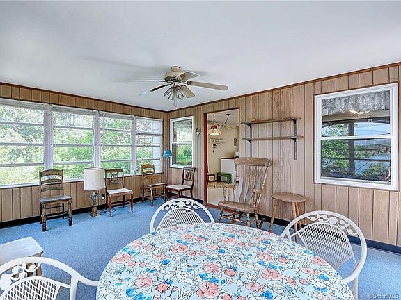 Waterfront living on beautiful lake Pocotopaug! Year round home with 3 bedrooms and 1 & 1/2 baths. Dock included! Immediately available so you can enjoy the lake NOW! Approximately 90ft direct water frontage. Property being sold as-is with furnishings to be included with exception of 1 bedroom set (see Inclusion/Exclusion list).