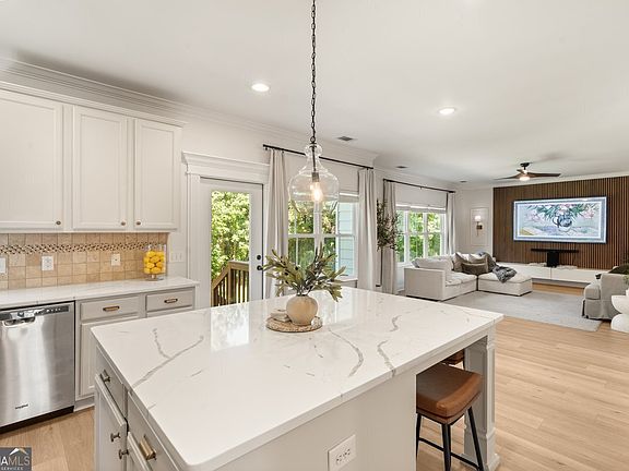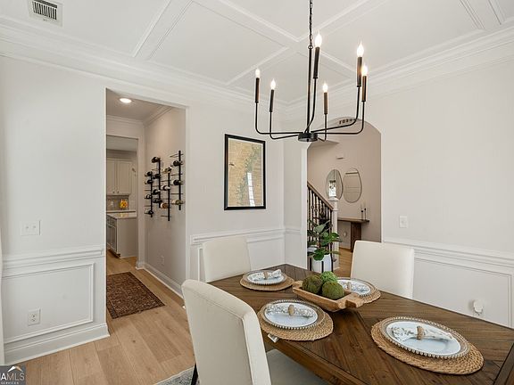 Want all the new construction benefits but not cookie cutter? Look no further! Situated on the premiere golf course of sought after Richmond Hill. This 4bed 3 full bath 2 Car side entry + Golf Cart Garage has been tastefully updated head to toe with over 60K in upgrades from new floors, paint, landscaping, down to door trim making it move in ready for its new owner. Thoughtfully crafted on a 3ft+ raised slab with hardie board & brick, to gutters & spray foam insulation. A show stopping 2 story foyer opening from arched dining room w/coffered ceilings + double crown molding to the left to a bedroom next to full bathroom to the right perfect for a mother in law. Make your way to kitchen with an over 6ft long island, quartz countertops to open concept living room with a luxurious slat wall. Tons of natural light flooding through views of your treeline in the back. Enter the owners suite w/ a large walk in closet & secondary closet space, walk in shower w/ new glass frame & enlarged soaking tub. 2 additional beds up w/ one connecting to 3rd full bath, and laundry room. Existing home warranty to transfer! Near hole 1 making it a golfers dream or enjoy the community pool and new pavilion. Zoned for Richmond Hills highly ranked school district. Conveniently located by Ft.Stewart/HAAF, Hyundai Plant, SCAD, Gulfstream. *Twilight photo virtually enhanced.*