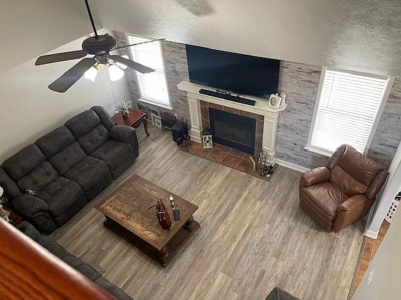 Stately home perched on a hill, in an upper class neighborhood! 4 BR, 2.5 Ba with fresh interior paint, New flooring with water proof laminate, Separate Ding Room, Vaulted ceilings, Banister, FP in Den with an accent wall, Large master with luxury master bath, 3 BR up with a 4th BR that could double for a bonus room. Enormous fenced back yard with an oversized patio. Owners transferring