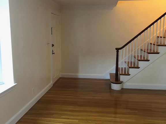 Charming 2 bedroom duplex in amazing location backing up to gorgeous conservation land. Near everything Newtonville has to offer. Living room with working fireplace. Dining room. Nice updated kitchen. New bath on the second floor half bath on the first. Beautiful hardwood floors. Laundry in the basement. Two car tandem driveway parking.