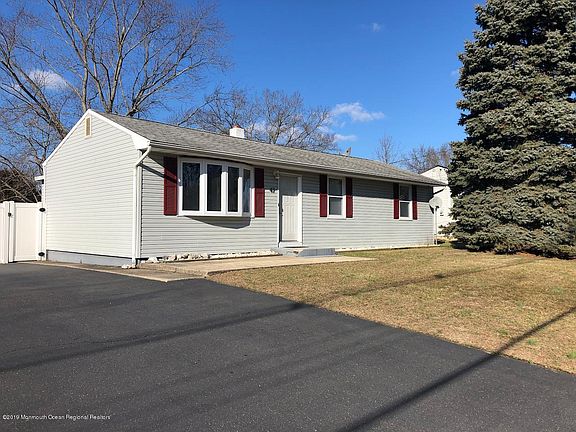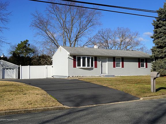 Light & bright single family home with a huge back yard and oversized detached two car garage in great location near the Garden State Parkway in southern Howell Township. This freshly painted Ranch home offers three bedrooms, one full bathroom, living room, dining room, galley kitchen & laundry room all on one level. There is overhead lighting in all rooms and ceiling fans in the living room & bedrooms. The home boasts a large back yard, plenty of off-street parking & a detached two car garage perfect for auto enthusiasts. The garage has two automatic door openers & gas heat. Tenant is responsible for all utilities, lawn maintenance & snow removal. Landlord seeks a well qualified tenant. Pets will be considered on a case by case basis for an additional $50/month. No smoking inside home!