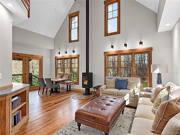 Special places are found throughout the South and this is one of them. Experience towering trees, spring-fed creeks, and expansive vistas. Listen to the sound of rushing water as you sip your morning coffee. This pristine location, about 17 miles northwest of Asheville, is primary to the developers commitment to preserving the environment. This home preserves as many natural features as possible, and each one strives to meet rigorous environmental standards. Reclaimed barn wood siding, rain chains with catch basins, icynene insulation, low-e windows, wormy chestnut custom cabinetry, quartz countertops, on demand hot water, and Morso wood stove are just a few of the highlights that pack on the luxury and eco vibe. On any given day you can hike the surrounding mountains, fish in nearby streams, visit Biltmore for a wine tasting, or simply relax in the terrace spa at Sky Valley Lodge with outstanding views. Short term rental encouraged!