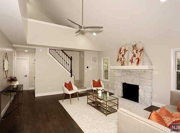 Step inside this beautiful and thoughtfully renovated 4 bedroom 2 bath home. All new hardwood floors greet you as you enter the great room with 2 story ceiling and wood burning fireplace for those cold winter nights. Kitchen has been tastefully renovated with granite countertops and all stainless appliances. Open floor plan makes this a lovely home to entertain. Both bathrooms have been updated in contemporary and neutral finishes. Master bedroom is spacious and bright. All new carpeting has been installed in neutral color on stairs and second floor. The expansive back yard is very private and mostly fenced. Just bring your fire pit, play yard, or whatever you desire, there's plenty of space! Wonderful deck adds additional area to sit and take a cup of tea. Enjoy the life in this wonderful lake community! Additional upgrade to the home are brand new HVAC with wifi thermostats, and brand new roof.Stone facing to the house