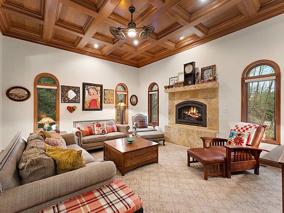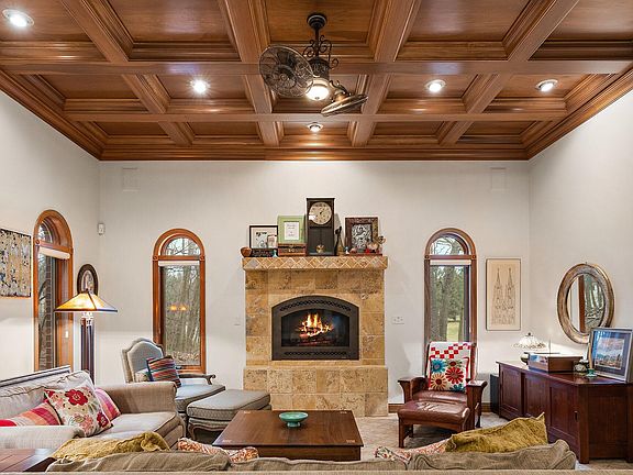 - Description: All Wood Coffered Ceiling with fireplace