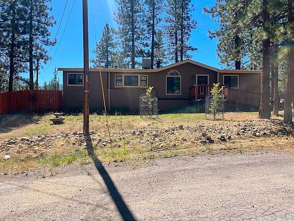 Mountain views and beautiful scenery surround this 3 bedroom, 2 bath fully furnished manufactured home located in the Country Club CTS Mobile Home Park. Enjoy the outdoor space with a fenced back yard, deck with porch swing and hot tub. The home features a Blaze King wood stove, central heating, spacious kitchen with a double oven and plentiful cupboard space, laundry room with storage and door that leads to a fenced side yard.