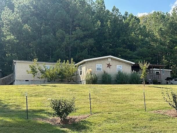 Very clean and neat manufactured home with 4 bedrooms and 2 bathrooms. Covered front porch for sitting, relaxing or grilling. Fenced yard. LVP in living room, electric fireplace, new skylight, kitchen has new countertops, refrigerator stays. Master bedroom has walk-in closet. 8x11 shed stays. Beautiful view of mountains, end of road privacy.