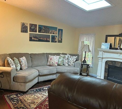 Electric fireplaceFenced yardCovered front porchNew skylightWalk-in closetNew countertops