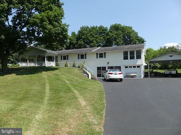 4 BR, 3 full bath, rancher on 2.73 idyllic private acres with huge 40' x 32' detached garage, with 14' ceiling and 12' doors and 5' concrete floor, separate septic and electric service. Pond stocked with bass, carp etc. Walk-out lower level with extra kitchen, bath and bedroom for possible in-law suite. Front porch, rear enclosed sunporch and another sunporch off master bedroom with on suite bath.