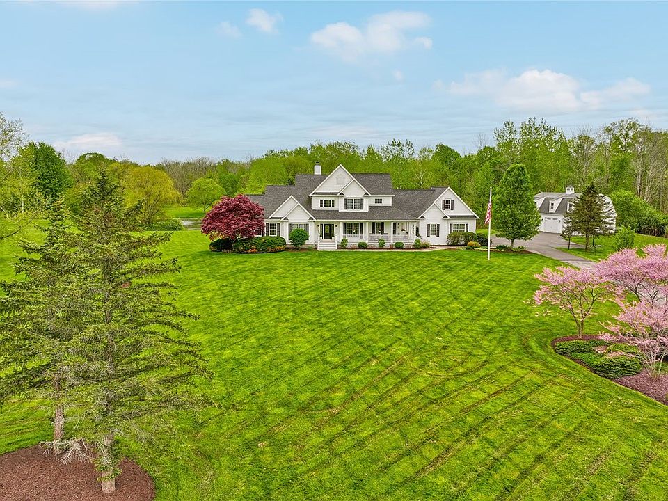 STUNNING 8.17 acres of beautiful land, a pond, salt water pool, large outbuilding and stunning Modern Farmhouse Mansion! Privacy and luxury combine as you tour this Extensive Estate. Upon entering, the breathtaking stone fireplace showcases the open floorplan and amazing windows to the outside! Your first floor offers 2 large offices, a main bedroom suite with gas fireplace and private deck and a large main bathroom and walk in closet. The formal dining room is great for large gatherings and the beautiful white Chef's kitchen offers double ovens, island with a gas cooktop, and a large pantry. Two staircases lead you to the private 3 bedroom area with bath, and your entertaining area, equipped with a pool table, bar and large TV/entertaining space. The basement is sprawling with two walkouts to the exterior and garage. The Carriage House offers 3 additional parking bays(6 total) and an unfinished loft space! ENJOY the resort style grounds! Relax in your saltwater pool, hot tub, and deck with outdoor TV. Square Footage includes finished bonus room of 1034 sq ft. This is natures paradise! Delayed negotiation's offers Due Tuesday 5/21 at 1pm.