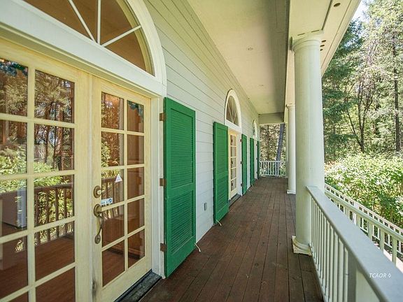 Elegance in the woods, stepping onto this property will be impressed by the enchanting pillars in front of the home and the large and relaxing deck with incredible views of the Trinity Alps Mountain range. This home that backs up to USFS land has lush landscaping abound and a small creek off to the side. Stepping into the approx. 1700 sf home with 3 bedrooms and 2 full bathrooms with custom windows on both sides of the home to bring in all the outdoor delights of nature, a formal dining area, sitting area next to kitchen, large living room with wood stove insert and glass doors to enjoy the sight of the flames. Master bedroom is large and with vaulted ceilings, walk-in closet, Master bathroom features dual vanities, garden tub and separate tiled shower. Both guest bedrooms are on the