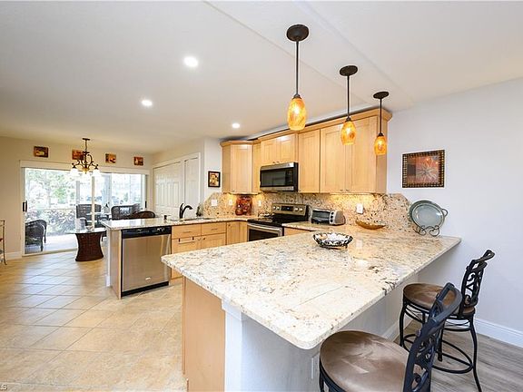 VACATION RENTAL- Brand New A/C. LOCATION, in Wiggins Bay can't be beat!. This Bermuda Cove Community located by the water & adjacent to Tarpon Cove Yacht & Racquet Club, currently has transferrable membership with this unit. 3 bedrooms, easy access first floor & steps away from it all. Spacious living area is comfortable for loads of Dining, the gorgeous open kitchen has plenty of granite counter space, Maple cabinetry, stainless appliances, designer lighting, extra pantry closets and a good-sized breakfast nook. Tile floors flow throughout entire unit, both baths have upgradEs. Freshly painted, Neutral colors, electric switches changed to LED w/dimmers. Door handles new brush nickel, & front storm door, name a few of the features. BUT, Best of all, it's furnished to get u started. Lanai adds more space for eating or relaxing, plus extra storage. Laundry is hidden away but convenient to access. The carport parking spot is conducive, rt on the end. Bermuda Cove Community has it's own pool, hot tub & Cabana baths, plus 2 grilling area & covered bike storage. Ask about the transfer fee to buyer for Tennis, fitness, dining, Tiki bar, pool, Boat shuttle, bocce and other amenities to enjoy.