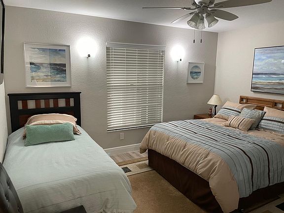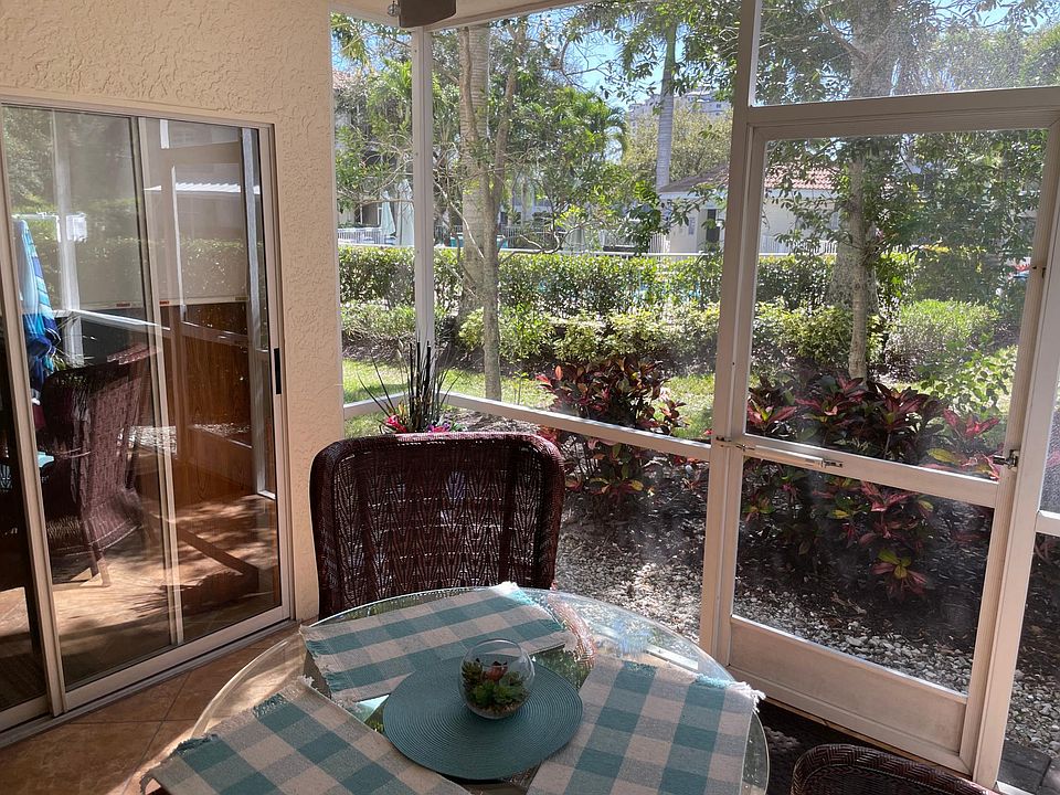 This Bermuda Cove Community located by the water & adjacent to Tarpon Cove Yacht & Racquet Club. 3 bedrooms, easy access first floor & steps away from it all. Spacious living area is comfortable for loads of Dining, the gorgeous open kitchen has plenty of granite counter space, Maple cabinetry, stainless appliances, designer lighting, extra pantry closets and a good-sized breakfast nook. Tile floors flow throughout entire unit, both baths have upgrads. Freshly painted, Neutral colors, electric switches changed to LED w/dimmers. Door handles new brush nickel, & front storm door, name a few of the features. BUT, Best of all, it's furnished to get u started. Lanai adds more space for eating or relaxing, plus extra storage. Laundry is hidden away but convenient to access. The carport parking spot is conducive, rt on the end. Bermuda Cove Community has it's own pool, hot tub & Cabana baths, plus 2 grilling area & covered bike storage. High chair, pack and play beach chairs and umbrellas. Available August, September, October and November