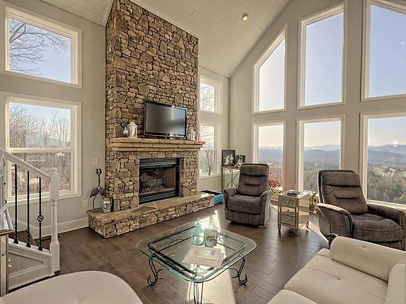 BREATHTAKING LONG RANGE VIEWS elevate your soul every time you look out your windows! Step inside your Great Room with sky-high white vaulted ceilings! The living area and dream kitchen is wide open with features like granite countertops, stainless steel appliances, and an island for friends and family to gather. Your living room showcases a stone fireplace, perfect for warming chilly evenings. Down the hall is a laundry room, guest bath, bedroom & main floor Master Ensuite. Upstairs is your 2nd Master Ensuite with double vanity, walk-in shower, and massive walk-in closet. Outside is a mountain top deck with a hot tub to relax, soak in the view, and recharge your spirit!