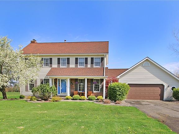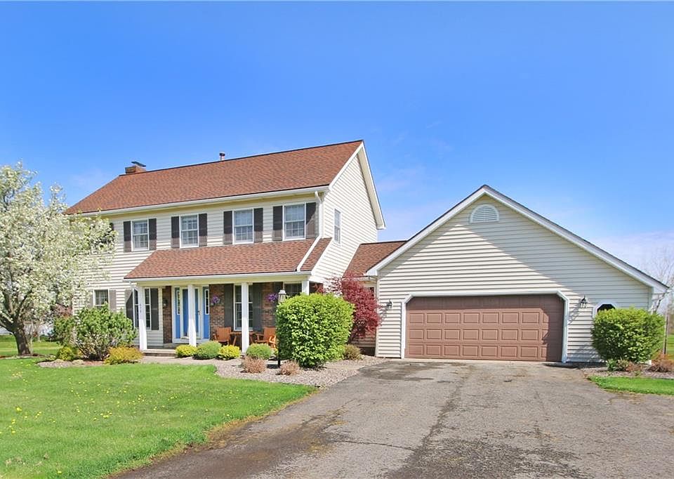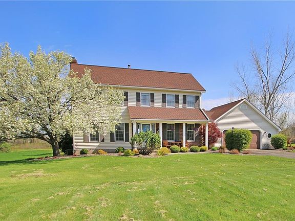 Welcome Home! This fantastic 3 bedroom and 2.5 bath Colonial sits on 5+ acres! The huge eat in kitchen is freshly updated with light wood cabinets, glass tile back splash, and dining area. Plus a formal dining room for all your entertaining needs. This home has no lack living space, from the living room to the family room to the massive FULLY Finished basement with wet bar, & exterior walk out! Upstairs you will find a master bedroom with a master bath and walk in closet! Along with 2 more bedrooms, one of which has another walk in closet! Through the sliding glass door step out onto a deck that overlooks the picturesque 5.27 acres with mature landscaping and trees! Also features a wood burning fireplace in the family room and wood burning stove in the finished basement. 1st floor laundry! Central air. Nothing else to do but move in!