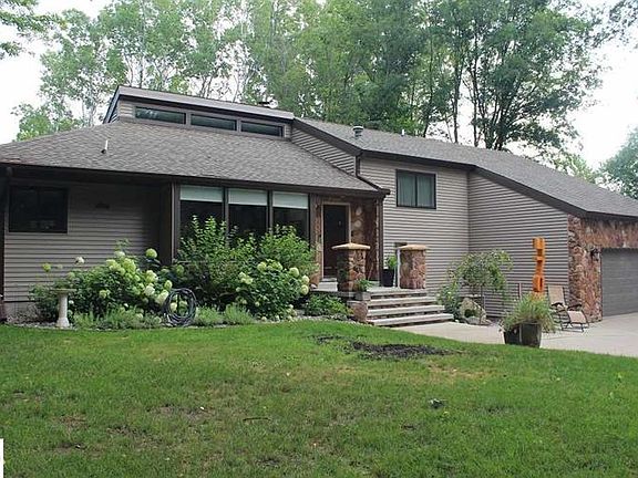 Modern luxury farmhouse best describes the style of this home on one acre with over 200' of frontage on the Chippewa River! This over 3, 000 square foot home was completely remodeled in 2016 by Integrity Builders. All doors were replaced and 6-inch trim added throughout the house. The kitchen features a copper farmhouse sink, subway tile, custom industrial lighting and granite island with a reclaimed barn wood base. Master bedroom features a beautiful master bath, expansive walk-in closet, vaulted ceiling, gas fireplace and a patio overlooking the property. Heated tile floors in both the mud room and master bath. Nearly every room has vaulted ceilings. The outdoor entertaining space is multi-level, maintenance free and private from neighbors. All this just a few miles from the center of Mt. Pleasant!