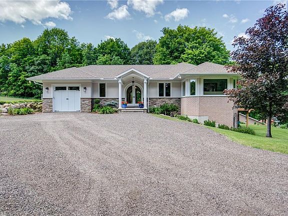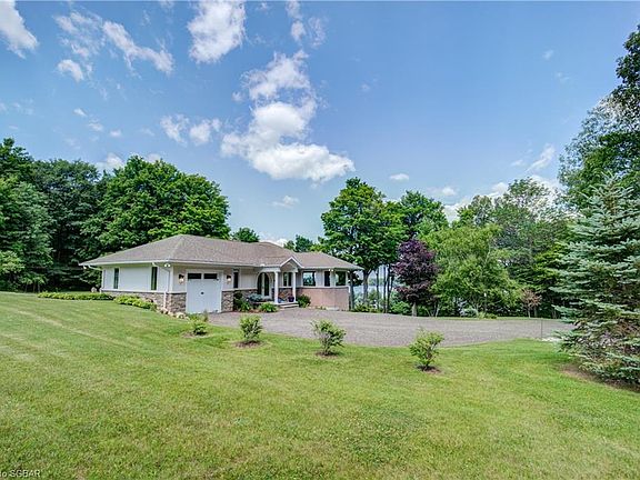 This stunning sprawling bungalow is a nature lover's and hobbyist's oasis. Starting with the spectacular panoramic views of Penetanugishene Harbour and the open waters of Georgian Bay, followed by the 17+ acres comprised of forest and plantation areas (currently in the Managed Forest Tax Incentive Plan) with walking/hiking trails, horse shelter & tack room for horse enthusiasts and ultralight hanger, the options are unlimited. This immaculate home features recently completed unbelievable grand foyer/garage addition, updated kitchen and bathrooms, spacious great room with walkout, main floor master suite with double walk-in closets and 6 piece ensuite. A fully finished lower level with two walk outs, 3 bedrooms, exercise room, an abundance of storage, oversize single attached garage along with a detached heated double garage with loft, and crushed asphalt driveway complete the picture. This amazing home is turn key!