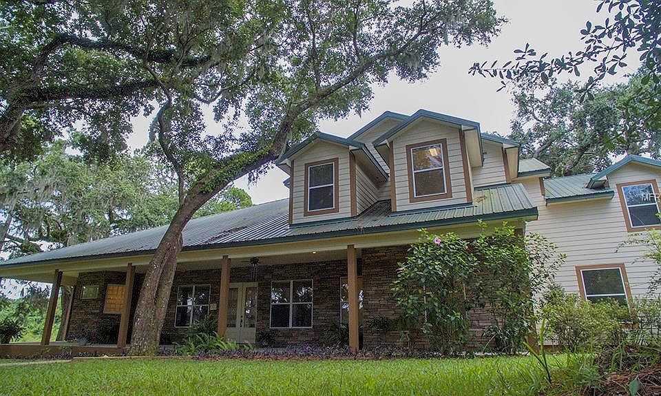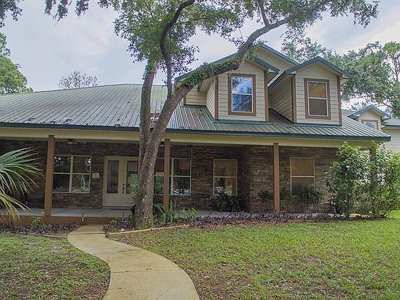 Custom designed & quality built 4 BR/3.5 BA home w/nearly 5000 sq.ft. on 2.5 acres! Only 30 minute drive to Orlando to the south and 30 minute drive to New Smyrna/Daytona Beaches to the North! Screen-enclosed pavered pool & patio area offers salt-water pool with waterfall & caretaker system, and summer kitchen! RV Garage/Workshop for all your Toys! 69 ft.wide covered front porch overlooks the park-like treed setting! Leaded-glass French doors take you to the Great Room w/28' cathedral ceiling, 52" floor to ceiling stacked stone fireplace & custom media center! The gourmet kitchen features granite countertops & breakfast bar, gas range, double ovens, stainless steel French door refrigerator, walk-in pantry & breakfast nook! The game room is complete w/7' pool table & cue sticks and pool-planned half bath! The Master Retreat is nearly 400 sq. ft. of spaciousness w/10'ceilings plus the Master Bath w/His&Her closets includes Centurion Safe, jetted tub, glass-enclosed large shower w/2 shower heads plus 4 body wash heads + double granite top vanities! Also on the ground floor is a guest room and full tub bath, and laundry room complete w/washer/dryer and laundry sink!Upstairs floor plan includes loft, 2 bedrooms, a full bath and 28x24 Bonus room, perfect for home theater or activity room! The 30x45 RV garage boasts 3 overhead doors (drive-thru,)RV hookup & workshop area w/second floor storage! 10 zone irrigation system! Tankless water heater! 4-zone programmable A/C! Metal roof!No HOA restrictions! Call today!