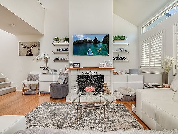 This stylish and modern residence effortlessly lends itself to a relaxed style of living. A boater’s paradise with nearby Ballena Isle Marina - the only direct deep-water access Yacht Harbor in Alameda. The property grounds feature a private community pool, secure gated access, neighborhood walking trails, vistas of the bay, sunsets, San Francisco skyline, Pier 29 restaurant, and a tranquil island style lifestyle. Unit features a well-appointed triple level floorplan boasting loft living coupled with 2 bedrooms and 2.5 baths. Stunningly upgraded hardwood flooring, remodeled kitchen with stainless steel appliances and an open floorplan with bar seating. Two private exclusive outdoor spaces include an upper deck and lower patio with direct access to the pool along with your own private hot tub. Make this your home or a perfect pied-à-terre. Award winning design by acclaimed Fisher-Friedman featured in Sunset Magazine.