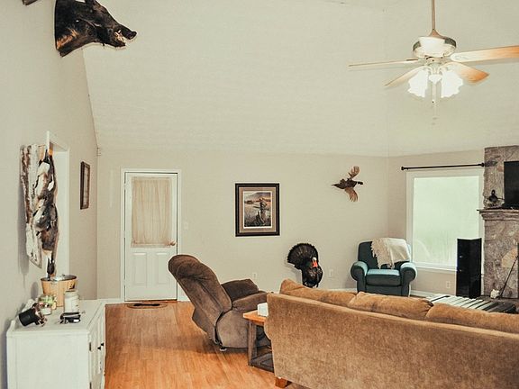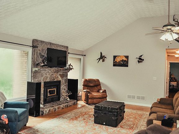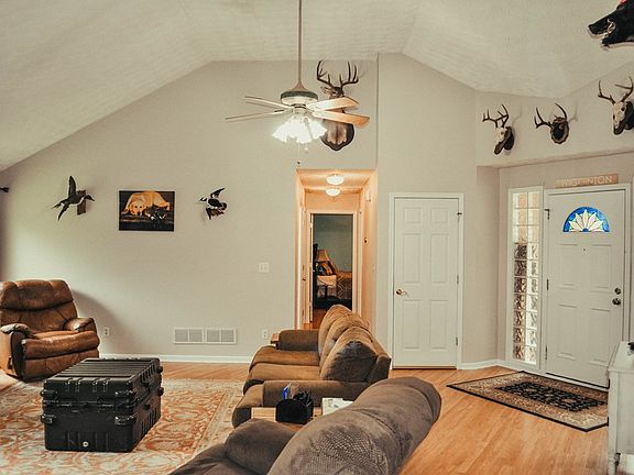This secluded 3 bedroom, 3 bath and 2 car garage is the perfect home nestled into an extremely private hardwood surrounded setting. Stunning entry opens to vaulted ceilings in living area. Kitchen features new granite tops with breakfast area. All bedrooms on main with 2 full baths. Full basement has large workshop area, a beautifully finished entertainment room, a concrete vault with poured concrete ceiling which can serve as safe and storm shelter, full bath not enclosed, and garage door access to back yard. Rear deck and screened in porch will be a perfect setting for grilling out.