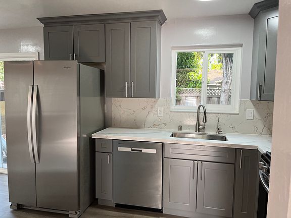 Completely remodeled in 2023. Super quiet interior due to Insulation and Double pane windows. 3 bed 2 bath lower unit Apartment with huge backyard in Cupertino School District ! 1200 sft gross living area Huge private backyard ( approx 1100 sft) Stainless steel appliances - Refrigerator, laundry, dishwasher, gas stove and Microwave Brand New Central Air conditioning(2023), Ceiling Fans in all rooms, Recessed lighting in living room Kitchen - Gray cabinets and Quartz countertops and full backsplash Bathroom # 1 has a bathtub and Bathroom # 2 has Shower. Quartz shower walls for easy cleaning, exhaust fans in both bathrooms. New Luxury Vinyl flooring and fresh paint Detached 1 car Garage parking and 1 guest parking Available to move-in 8/31 REQUIREMENTS:- Security Deposit $3950 1-Year Lease Agreement Total Family income above $11800/month Credit Score 650+ No smoking Small pets ok
