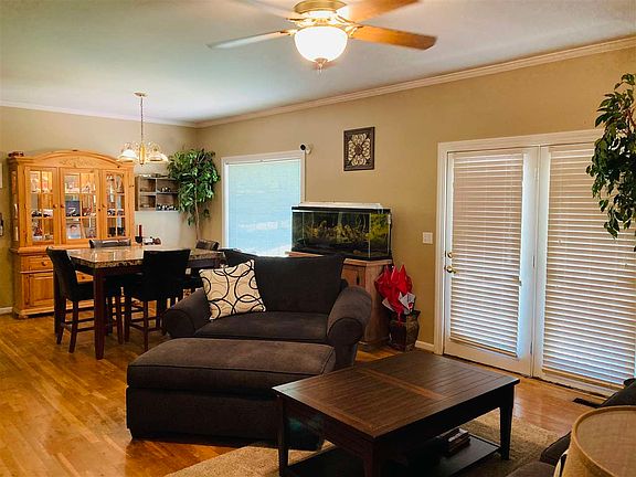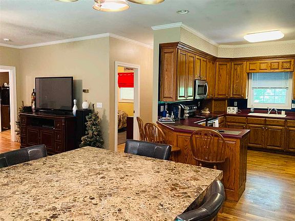 4BD/2BA Ranch on .90 acres. Spacious family/dining area with access to the deck for entertaining. Open to the kitchen with all appliances, ample cabinets, and breakfast bar. Split bedroom floor plan featuring a master bedroom with a master bath, double closets, double vanities, jetted tub, and separate shower. Access to the washer/dryer in the hall on your right entering the back door. Smaller bedroom on your right as you enter the foyer, and the other 2 bedrooms have a full bath tub/shower you enter from the hall. Covered front porch, concrete drive, mature landscaping, and 2 storage buildings convey! Conveniently located to hospital, shopping, and major highways! A must see!