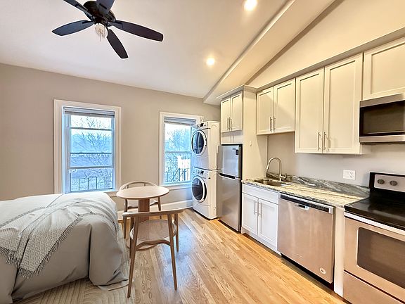NO BROKER FEE and NO SECURITY DEPOSIT! Available September 1st! Recently renovated bright studio apartment in awesome Southie Brownstone. Amazing high ceilings and FULLY EQUIPPED kitchen and bath, in-unit washer-dryer, air conditioned and gleaming hardwood floors throughout! Located on a quiet side street, just steps away from Fat Baby, and intersection of East and West Broadway. Don't miss out!