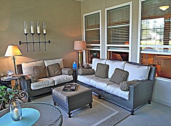 Nice on the outside, AMAZING on the inside! 3 bedrooms, 2 baths on the lake with fabulous views! An all weather porch has vinyl windows that open up/down to screen (great cross breezes thru the house). Upgraded kitchen granite counters, tumbled river rock backsplash w/under cabinet accent lights, open to dining& living room, recessed niche with custom fit mirror. Front BR has sunny bay, 2nd BR has tall vault ceiling, master BR soothing lake view. Other features include: New HVAC,Crown molding throughout,tray ceilings,inside laundry,jet tub,luxury master bath, muted blues and gray tones,water softener,extended patio for grilling,lawn care,community pool. One Owner Maintained Home, Near KingsBay Navy Base!