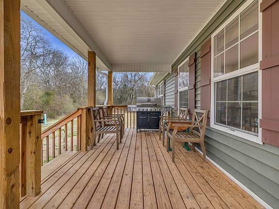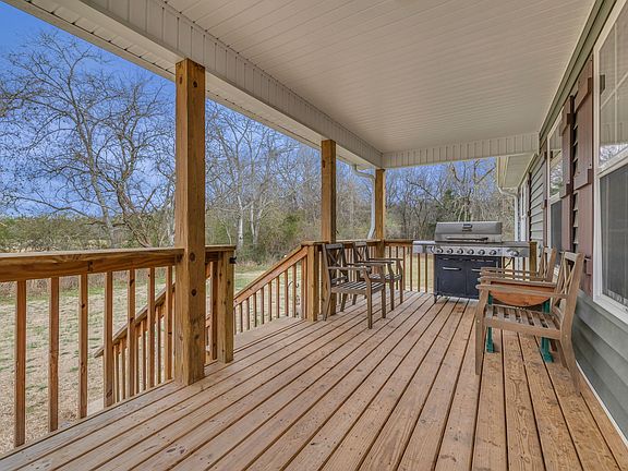 Nestled on over 6 acres of beautiful land sits this modern 4-bedroom, 2-bathroom haven that boasts a serene backdrop as the land gracefully backs up to a tranquil creek. Embrace the soothing sounds of nature from your own backyard, all without the need for flood insurance. Indulge in functionality and style with this newly crafted residence featuring exquisite countertops paired with custom cabinets. The allure of the interior is further enhanced by the beauty of durable and stunning laminate floors, creating a luxurious ambiance that resonates throughout. The oversized rooms provide an abundance of space for comfort along with functionality, while large windows frame breathtaking views that invite natural light to dance within. Additionally, a dedicated storage building enhances the functionality of the property while the covered porch creates relaxing area to enjoy all the beauty this property has to offer. Don't miss your dream home!