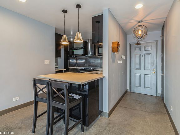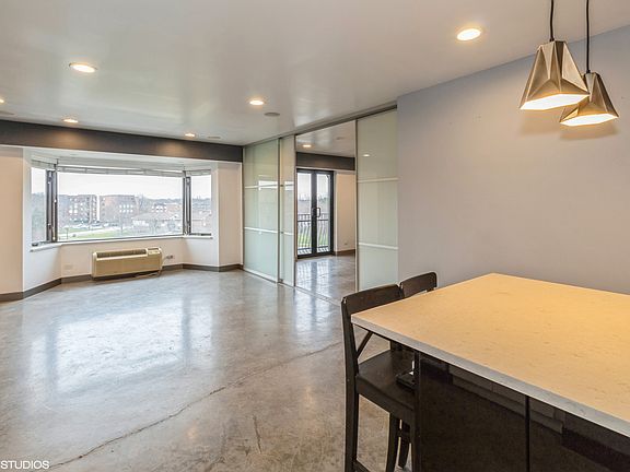 Modern, loft-like living in the suburbs! Sleek, Glen Ellyn 2BR/2BA "Penthouse" unit with Juliette balcony and beautiful sunset & pool views. This contemporary space with open floor plan features custom poured, polished concrete flooring, in-unit laundry, recessed lighting, bar + built-in speakers. The imported sliding glass pocket wall allows for a private 2nd bdrm & full bath or an extra large great rm. Kitchen features stainless appliances and back splash, quartz countertops, glass tile + built-in desk. Primary suite with 2 walk-in closets and amazing spa bath featuring custom Euro soaking tub, sep shower, separate vanity area & Italian plumbing fixtures. 1 heated garage space + unlimited exterior guest parking. Greenbriar Place is a secure, updated building with beautiful swimming pool, common areas, elevators and an impressive vaulted entrance. Walk to College of DuPage + only minutes to shopping, dining, train station & I355/88/290.