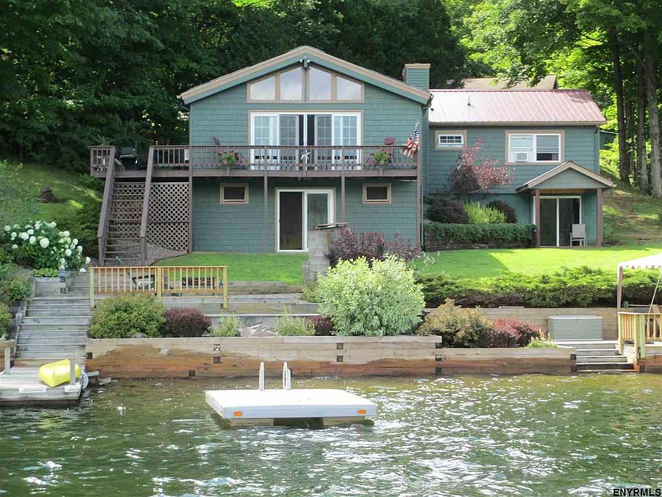 90' of DIRECT LAKE FRONT ON HADLOCK. The lake for all seasons. Summer and Winter sports. Looking for a life style on the water? This Gem is located in the foothills of the Adirondacks. Privacy, peace & tranquility. Open kitchen, dining, & Great room, with Vermont cast (gas) stove. 3 bedrooms, full bath on main level. Lower level walk out, with family room and full bath.