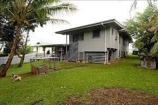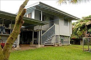 House on a Hill. Nice deck for you to enjoy the view towards the ocean, also look towards Volcano . Fewer homes directly across the street enhance the privacy. Year built is 1935, effective year is 1975.Paved parking area , totally fenced yard. Backyard space allows for entertaining and or gardens. Upstairs is 3 bedrooms 2 bath, downstairs Ohana is 2 bedrooms 1 bath.