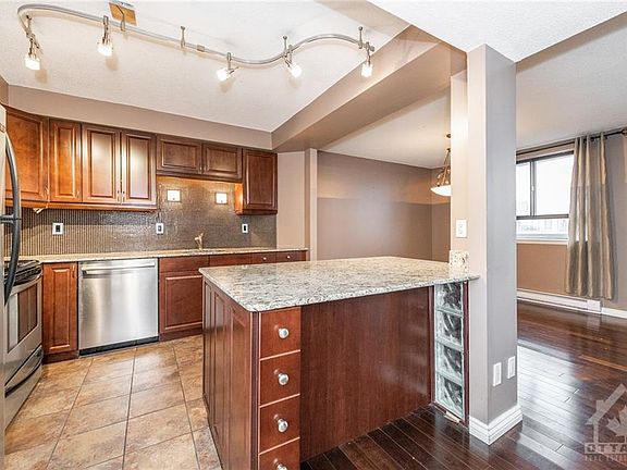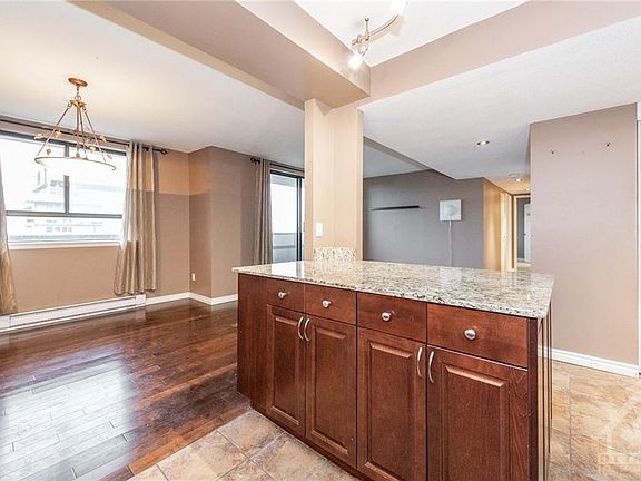 Enjoy a downtown lifestyle with this beautiful 2 bedroom 1.5 bathroom condo located on the sunny south side of the 21st floor. This condo offers updated kitchen with granite top island, spacious living room with plenty of natural light, a master bedroom with walk-in closet and ensuite bathroom, full size laundry, underground parking & storage locker. This building has many amenities including rooftop patio, pool/sauna, party room, bike racks, access to guest suite, central air and security. Copyright Ottawa Real Estate Board (OREB). All rights reserved. Information is deemed reliable but not guaranteed.
