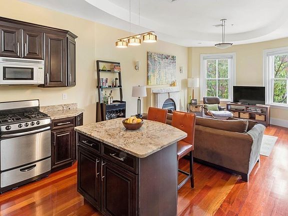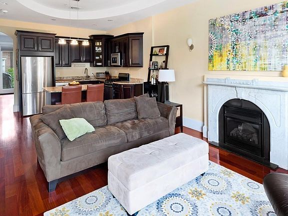 The charm of a South End brownstone with all the modern amenities of new construction PLUS a private parking space! Completely renovated in 2009, this stylish unit has a high-end open kitchen with stainless steel appliances, granite counters, and a breakfast bar. The open living room has large sunny bow windows, a working gas fireplace, and high traced ceilings. Extra alcove space includes a large closet and is perfect for a dining room or study. Other exceptional touches include gorgeous Cherry hardwood floors, custom designed archways and moldings, a fully restored marble fireplace, and a large private deck with a view of the Prudential Center. The bathroom has beautiful tile work and includes a storage cabinet and washer/dryer. Central heat and A/C. Great location close to public transportation and some of the newest and finest restaurants and shops in the SE.