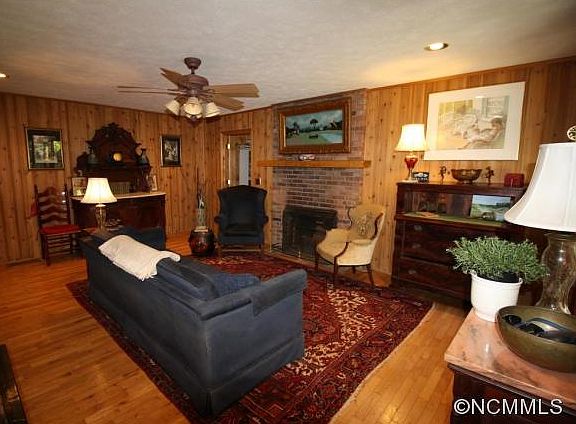 Charming country style home with rocking chair front porch, large deck off dining area with huge master suite. Pastoral setting with wooded level lot. Split bedroom floor plan with warm cozy living area with brick fireplace. Knotty pine paneling with hardwoods floors and lots of storage in the basement. Office in the basement not included in the total square footage.