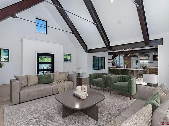 Wow! Completed in 2025, the mountain modern design-build at 470 Meadow Drive will knock the skis off your feet. This offering has it all: A south-facing 1-acre perch at the top of coveted Meridian Lake Meadows with stunner views in every direction and huge covered stone decks and patios framed in beautiful structural steel beams. When is the last time you stood on a stone deck? The main level features spacious dining and living areas anchored by more incredible steel beam work, white oak wide plank floors and an impressive floor-to-ceiling Rumford wood burning fireplace wrapped in a gorgeous steel surround and finished with a rock and steel hearth. Are you kidding me?The entertainer's kitchen features Wolf-Subzero-Cove appliances, a wet bar, a massive quartz center island, tons of storage and million dollar views from the sink! A dramatic floating oak and steel staircase gets you up to a large primary suite with it's own deck and down to a lower level living room, three guest quarters and a large laundry room. For those bigger family and friend gatherings the well equipped, separate one-bedroom 540 SF guest house will come in handy. Big vehicles and tons of toys? No problem. The gigantic 816 SF garage offers vaulted ceilings, a big storage loft and doors for tall vehicles. Andrew Hadley Architects and David Gross General Contractor created this incredible offering. Some images of the home are virtually staged.