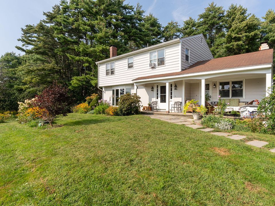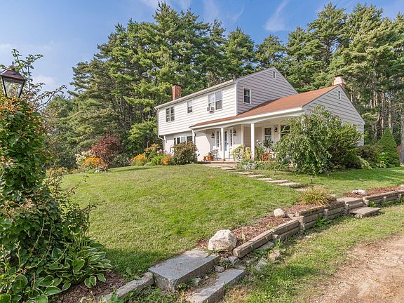 Charming 4-Bedroom mid-century home with modern upgrades making it a comfortable and inviting space. The house is situated on a 4.4 acre, subdividable wooded lot with beautiful long-range, southwest-facing views of fields and winter sunsets! Gardeners will love this location and enjoy adding to the existing established perennial beds. Set back from the road, the lot provides privacy and a pastoral feel, but is only 3.5 miles from downtown Brunswick and Bowdoin College, and 30 minutes to Portland's Old Port. The first floor living room with fireplace, dining area, and kitchen are open to each other and are perfect for family gatherings and entertaining. A first-floor bonus room with woodstove hookup and ensuite full bath can be a family room or primary bedroom. Upstairs are three generous bedrooms with tons of closet space, original refinished red oak floors, laundry room, and another 2 full bathrooms. A full, dry basement has windows and double doors opening to an enormous paved parking area, making it the perfect workshop. The home also features a propane-fired stand-by generator. Don't miss the opportunity to make this sweet, light-filled 4-bedroom house your new home.