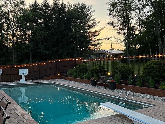 Custom Built California Ranch. Pride of Ownership, main floor boasts a beautiful kitchen with granite countertops, lots of cabinet space, a primary bedroom with jack and jill style bath with a second bedroom across the hall. Recently remodeled living room with new paint and carpets, lovely wood burning fireplace. Newly remodeled lower level family room with custom built ins, and pellet stove, home gym, barber area, 3rd & 4th bedrooms with a full bath. All situated on a 1 acre lot complete with L- Shaped inground pool, beautiful patio in a private setting. Attached two car garage and 1 car detached garage complete with wood working shop is great for any craftsman or car enthusiast. Schedule your showing today, as this home will not last!