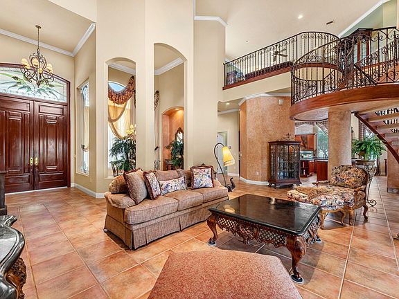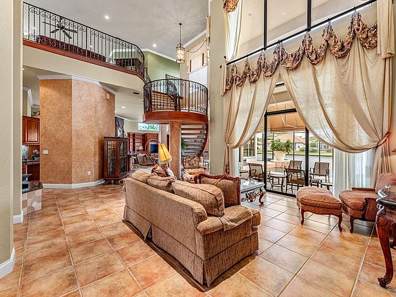 Situated at 470 Newport Drive within the distinguished enclave of The Cloisters in Indialantic, FL, this lakefront estate offers a blend of sophistication & tranquility across its 4,696 sq ft of living space. Constructed in 1999, the residence showcases an elegant dual-story composition crafted by Scalero. It encompasses four bedrooms & three-and-a-half baths, with interiors elegantly decorated by Michael Ganry. The property features a 95-foot waterfront expanse & a lower-level screened lanai that houses an exquisite infinity-edge pool, providing a private aquatic retreat. Elevated ceilings, soaring to 23 feet, amplify the voluminous interior. An opulent owner's suite on the 2nd level includes commodious bathing facilities & walk-in closets. Recent enhancements include a roof updated 1-2 years prior, a comprehensive central vacuum system, a culinary space equipped with a five-burner gas stove alongside a vast, functional laundry area, & upper floor electric shutters.