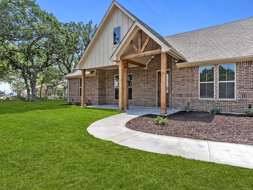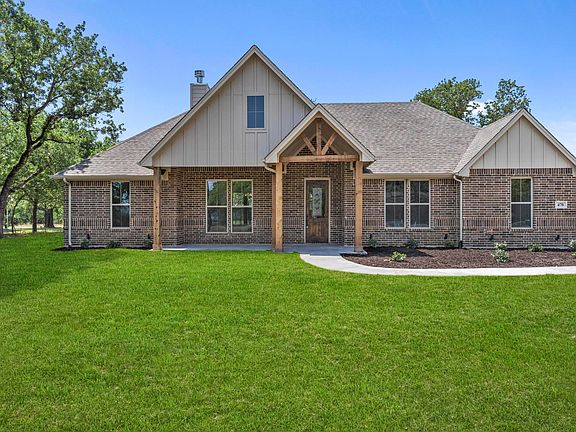 Brand new home in the new subdivision of Windmill Ridge Estates on a corner lot. Granite countertops in kitchen, custom built stained cabinets with custom trim work. Open floor concept with kitchen island and hanging pendant lights, crown molding in living, kitchen and master bedroom. Wood burning fireplace with bookcase. Enormous pantry with lots of storage space! Large walk-in master shower with tile and double bench, garden tub and huge walk-in master closet with island which goes into the laundry room. Mud bench right off garage along with half bath. High speed internet available. Established trees in the backyard, plus sod, bushes and sprinkler system. Great school district Paradise ISD! Located 30 minutes from Alliance Fort Worth. Come enjoy the country living in this quiet small community! Monthly Rent includes in Yard Service Renter pays water and electrical, yard service included with monthly rent. No Smoking,