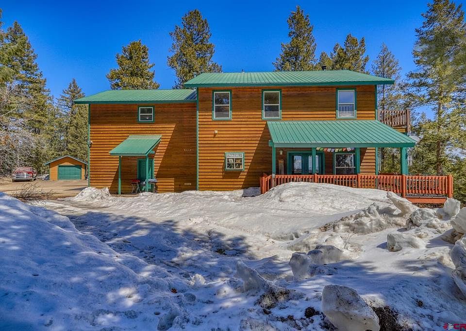 Stunning Pagosa home conveniently located a few miles from town. Property is secluded. Beautiful mountain views! Property has been very well taken care of. Gated entrance to property. Pine floors, two car attached garage, additional one car detached garage, covered patio in front and back of home, balcony off of master room, wood stove, on demand heating water system, spacious bonus room/game room upstairs, security system, lots of storage space. Property is partially furnished. Abundance of wildlife.