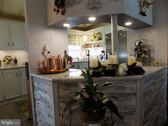 Well maintained mobile home with 2 master suites, two full bathrooms with walk in closet and master jetted tub. Living room with brick fireplace, with electric insert, updated kitchen with quartzite countertops, new ss appliances, plenty of cabinets and pantry. Customized kitchen bar finished with stacked stone. Built in desk, newer carpets and light fixtures throughout, freshly painted interior, new vanity with marble countertops, new toilet and mirrors, and custom wallpaper in bathroom. New central air unit and so much more. One carport, shed with electric, back patio with gazebo covering. Walking distance from community recreation center.