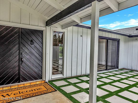 Remarkable pool home in charming South Merritt Island. Tastefully renovated and offering the perfect balance of luxury, privacy and a coastal lifestyle. Open and airy living space filled with an abundance of natural light. Brand new custom-designed kitchen provides both functionality and elegance with a large island, stainless steel appliances, and stunning quartz countertops. Oversized primary suite overlooks the gorgeous outdoor oasis, a unique, private and picturesque setting. New renovations include roof, HVACs, septic, electrical panel, pool pump and heater, resurfaced pool and deck, landscaping with artificial turf, flooring, bathrooms, and much more. Merritt Island provides a unique Island lifestyle with close proximity to the beaches, waterways, and the Space Center.