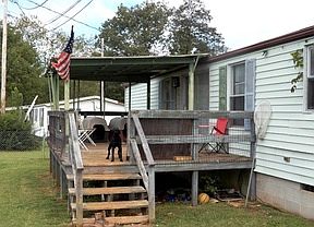 HANDYMAN SPECIAL - Priced $11,000 Below Tax Value. Nice Lake View in fall & winter from this property that sits up on a little hill. Summer view to left has some wires obstructing view. Manufactued Doublewide being sold 'as is' but has potential w/remodeling & renovating. Large living room with gas log fireplace and slider to back covered deck.Has had good rental history. Fenced backyard. Storage building needs work also.