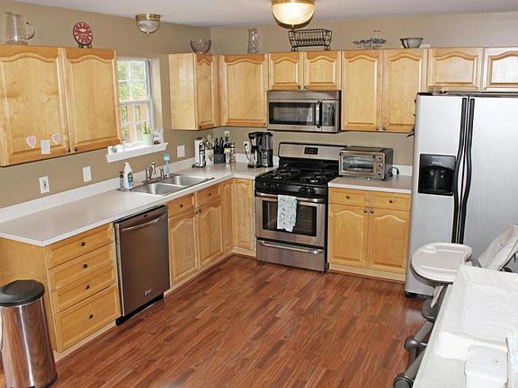 Relax on the front porch of this spacious town home. New flooring on the first floor. Freshly sealed deck that overlooks wooded area. Entertain in the finished daylight basement with bar that leads to a patio. Newer stainless steel appliances and central air.