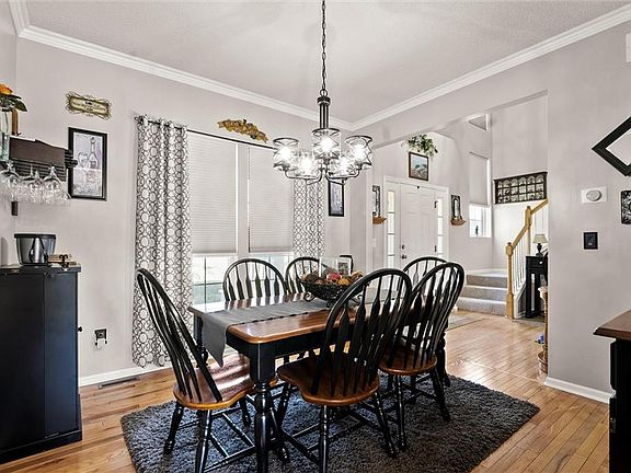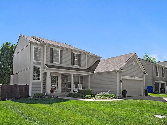 A meticulously cared for home with charming curb appeal and plenty of space in a convenient Olathe location - what more could you ask for? Reenacting the scene from an old movie where people sip sweet tea in a rocking chair on the front porch? We’ve got you covered there, too! This home will make all of your dreams come true. The open living area offers an effortless flow between the living room and kitchen. The living room is complete with a cozy gas fireplace you can turn on with the flip of a switch and remote-controlled blinds, and the open, eat-in kitchen features an island, plenty of cabinet storage, a pantry, and easy access to the beautiful back patio and fenced yard. This setup will allow you to delight in making everything from a cup of coffee to your favorite meal! And a nicely-sized formal dining room is the perfect spot to host family and friends. A conveniently located half bath and laundry room complete the main level, and upstairs a cabin-like getaway in the primary suite will be your own private oasis. The large bedroom has space for a seating area and even a coffee bar, and big, bright windows overlooking the backyard. The updated ensuite bath has a large tub, separate shower, long double-vanity, private toilet room, and huge walk-in closet. Two more bedrooms and a spacious second full bath complete the bedroom level. The unfinished basement has plenty of space for storage, but could easily be finished out for even more living space. Located minutes away from gorgeous Lake Olathe Park, Olathe West, multiple shopping and dining options, and more. Welcome home!