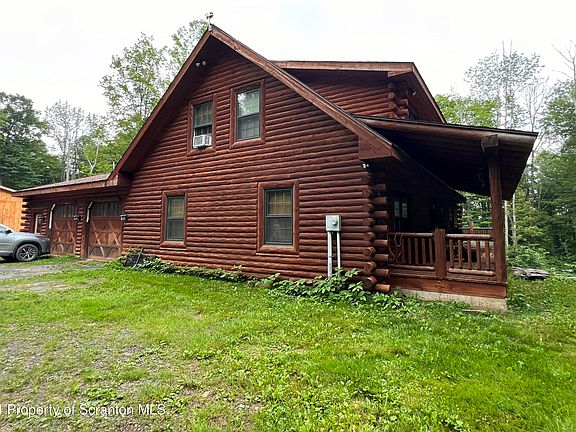 Don't miss the opportunity to own this unique, custom built log home located minutes from Elk Mountain Ski Resort. Nestled in the woods this 3 bedroom, 3.5 bathroom home sits on 9.3 acres with small pond and has decks on 3 sides, large fieldstone wood burning fireplace in the great room, and natural hickory flooring. This home has just shy of 3000 sq. ft of living area. Talk about a place to entertain, the lower level family room has a second full kitchen with kegerator, built in wine fridge, and a walk out basement. Low cost out door wood burning furnace makes heating this home inexpensive. Large barn with room for an RV and other projects.