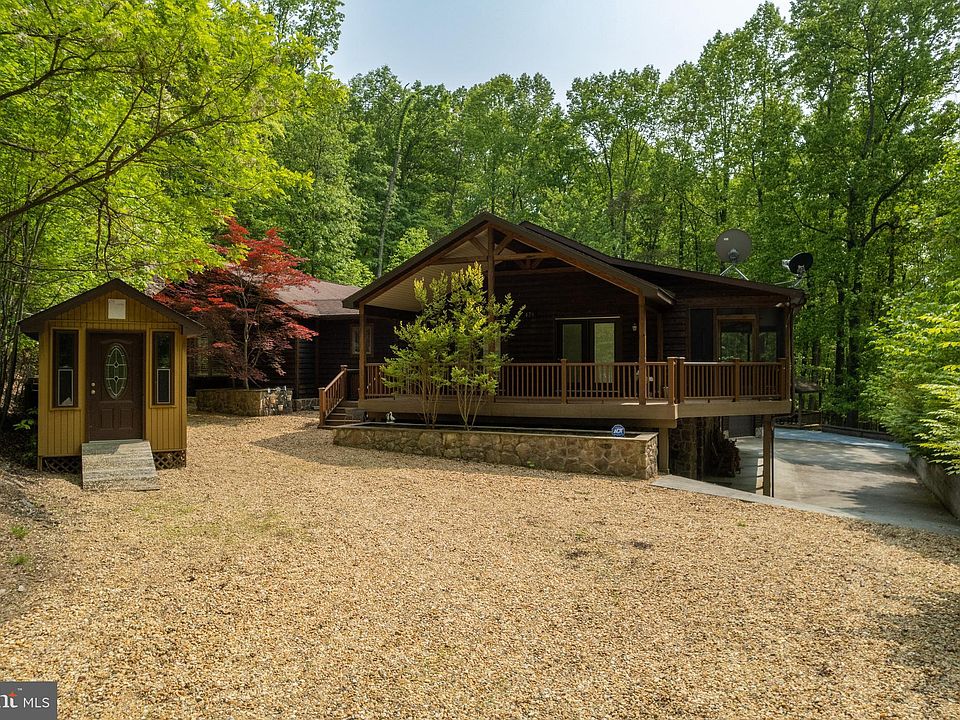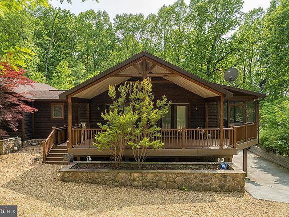 Extraordinary Mountain Retreat, with over 3,200 ft of living area! Expansive lodge room with wood burning fireplace, then a great room open floorplan design with a well-appointed kitchen, dining room and living room, all hardwood floors and cathedral style ceilings. Three bedrooms including the owner's suite, three bathrooms total. Head to the lower level for the full wet bar and media room. Two bonus rooms that are currently used for seller's get a way office, these could be used as bedroom 4 and 5, if desired. Fully equipped laundry. Go outside and you will find the huge screen porch to enjoy those lazy days, a 2-car garage, well designed fire pit area with patio for those cool evenings, a gazebo overlooking the woodlands and the regulation 4 lane 25 yd. pistol range and back stop. This home also comes with Cacapon River deeded access, enjoy the miles of river at leisure. Generac whole house generator - 3 years old with a 1,000 gal buried propane tank. State of the art security system. Most furnishings and electronics convey making this home is ready to enjoy now. Come out and view this exceptional property today and make this your very own mountain retreat!